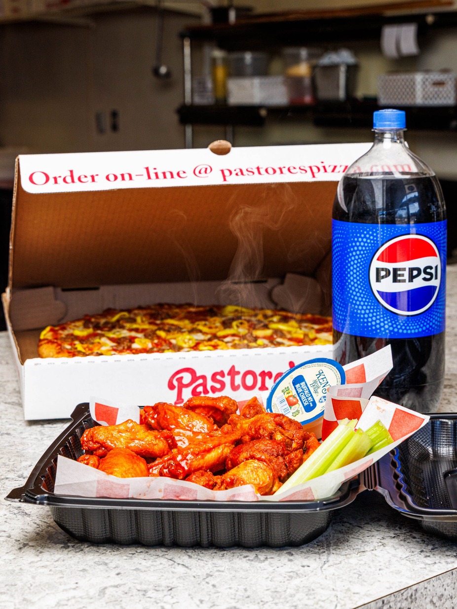 Family Deal 16” Large Cheese Pizza w/1 Topping, 24 Buffalo Wings, OR 32 Boneless Wings OR NEW 2lb Chicken Fingers & 2 Liter Pop - $49.49 + tax